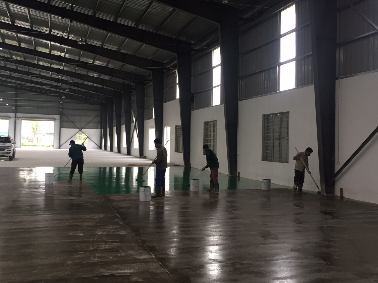 Chúng tôi tự hào là nhà thầu thi công tăng cứng mài bóng sàn hardener màu xám cho các phân xưởng, nhà kho và nhà ăn của công ty.